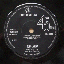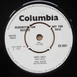 The images above show the single in the original 'green' Columbia sleeve, the vinyl disc details, a 'demo' version of the disc produced for distribution to the radio and tv stations in the days leading up to the official release and lastly the 'acetate' disc and its card sleeve produced by the record company as a 'master' prior to finalising the single ready for mass production.